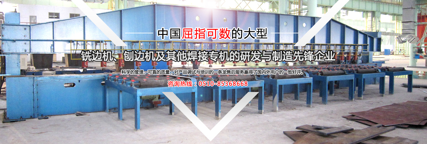 公司是中國金屬銑削切割自動(dòng)焊接工藝的搖籃,公司是國內(nèi)制造有壓梁、無壓梁銑邊機(jī)、刨邊機(jī)及其他焊接專機(jī)的專業(yè)廠家。取得國家專利局頒發(fā)的最新銑、刨邊機(jī)產(chǎn)品專利證書。通過了ISO9001.2000國際質(zhì)量體系認(rèn)證,并獲得了“全國用戶滿意產(chǎn)品”、“江蘇省質(zhì)量信得過AAA級(jí)品牌企業(yè)”的榮譽(yù)稱號(hào)。銷售網(wǎng)絡(luò)遍布全國,部分產(chǎn)品出口東南亞及歐美等國家。公司本著:質(zhì)量為首,用戶至上,信譽(yù)為本... 【詳細(xì)】